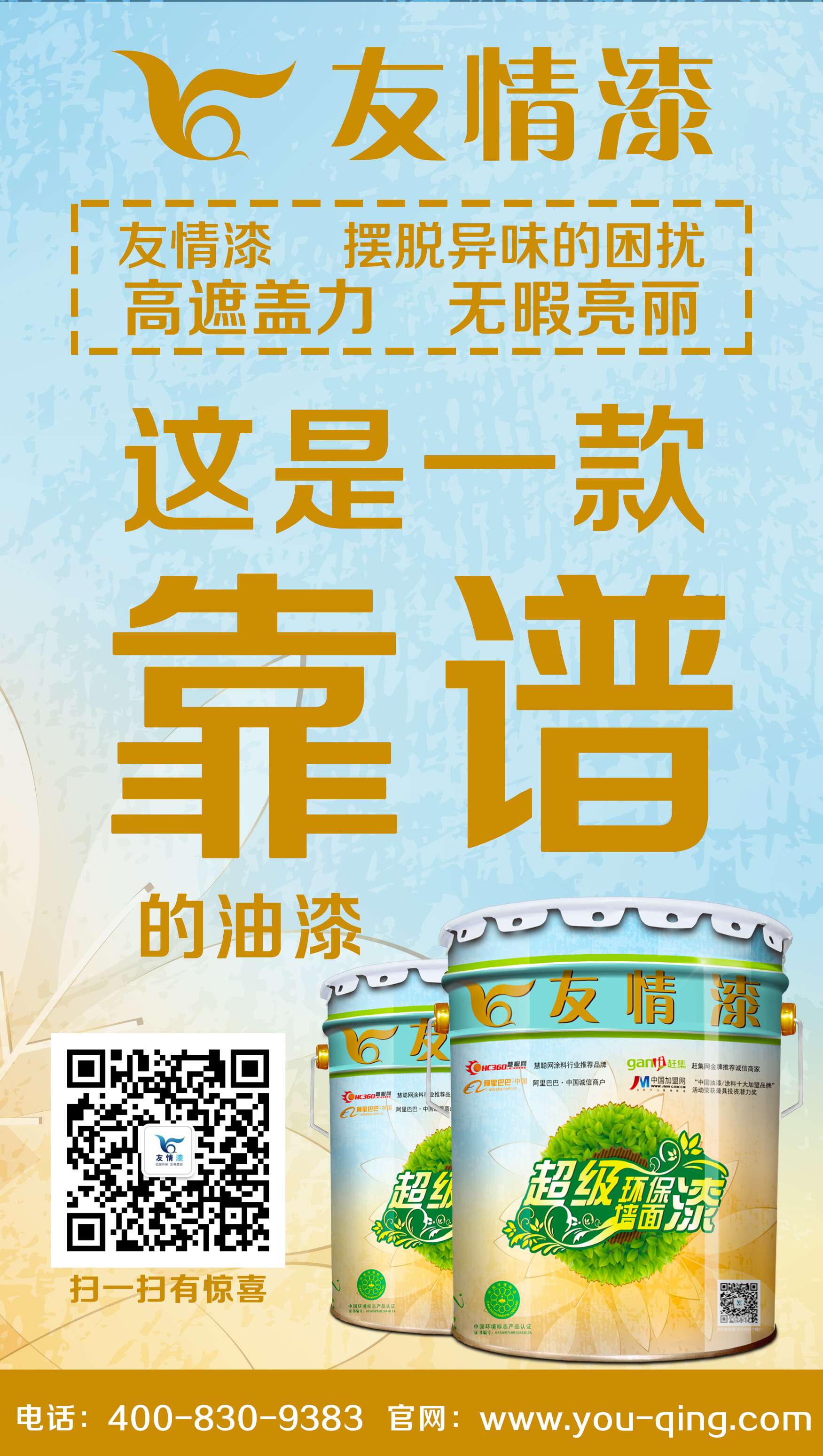 羅老板經過再三的考慮和琢磨下,決定在貴州獨山縣創辦一家油漆代理銷售門店。熟悉鄉鎮地方特點的羅老板,非常了解人們就偏向選取物美價廉的產品。在嚴格的篩選中,羅老板選擇了一個在國產品牌知名度比較高的品牌,作為他開店創業的一張王牌。這個被羅老板選中的王牌就是:中國低碳環保漆品牌——友情漆。