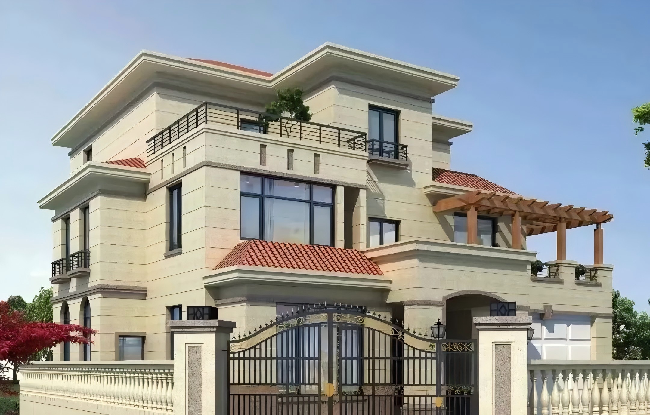 三、高大上的外墻品質 ,友情冠晶石擁有天然石材般的高級效果,漆膜堅硬無比,耐刮擦,對外墻墻體保護作用顯著。高級的質感也展示了別墅的質感,彰顯業主不凡身份。