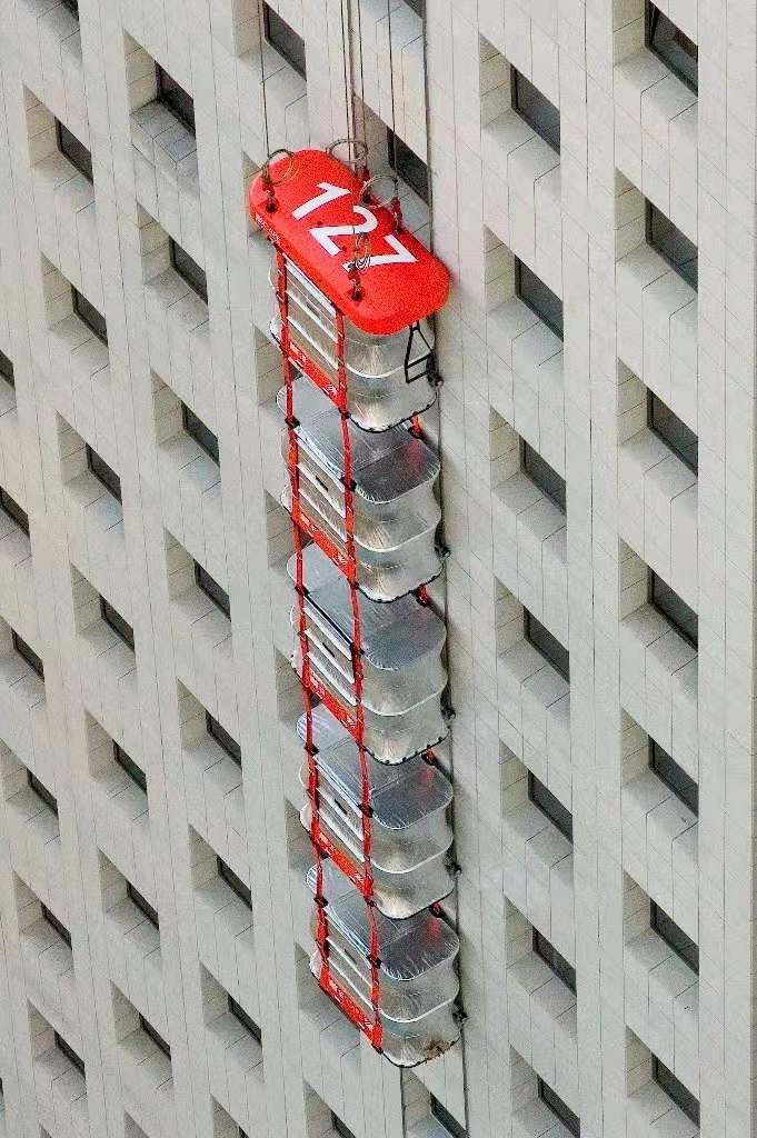 現(xiàn)在有一個可以折疊的電梯面對火災可以迅速帶人安全撤離,這是一款由以色列公司研發(fā)的逃生電梯系統(tǒng),安裝在大樓的頂端發(fā)生危險的時候設備會翻轉(zhuǎn)過來,沿著大樓下降下去,只需要短短幾十秒時間就能到達地面了。