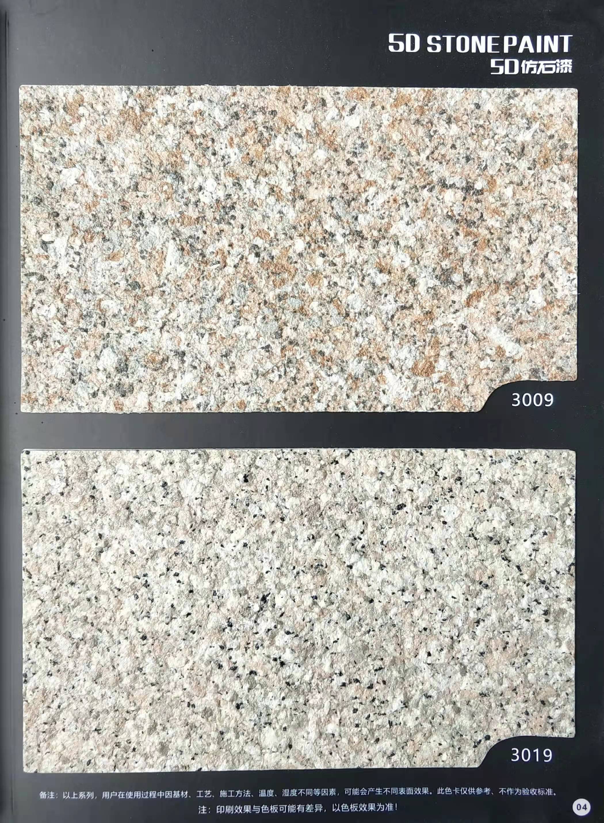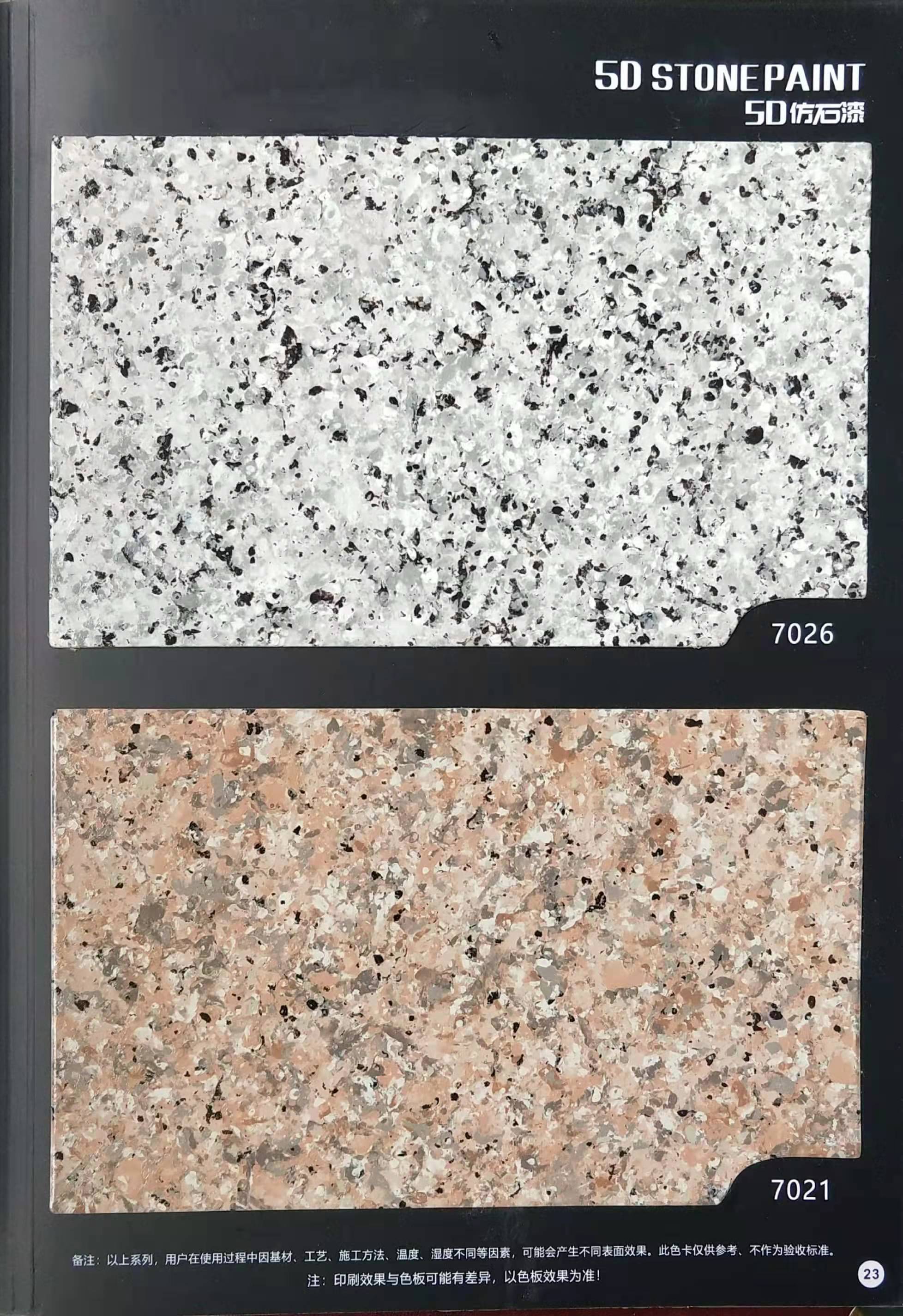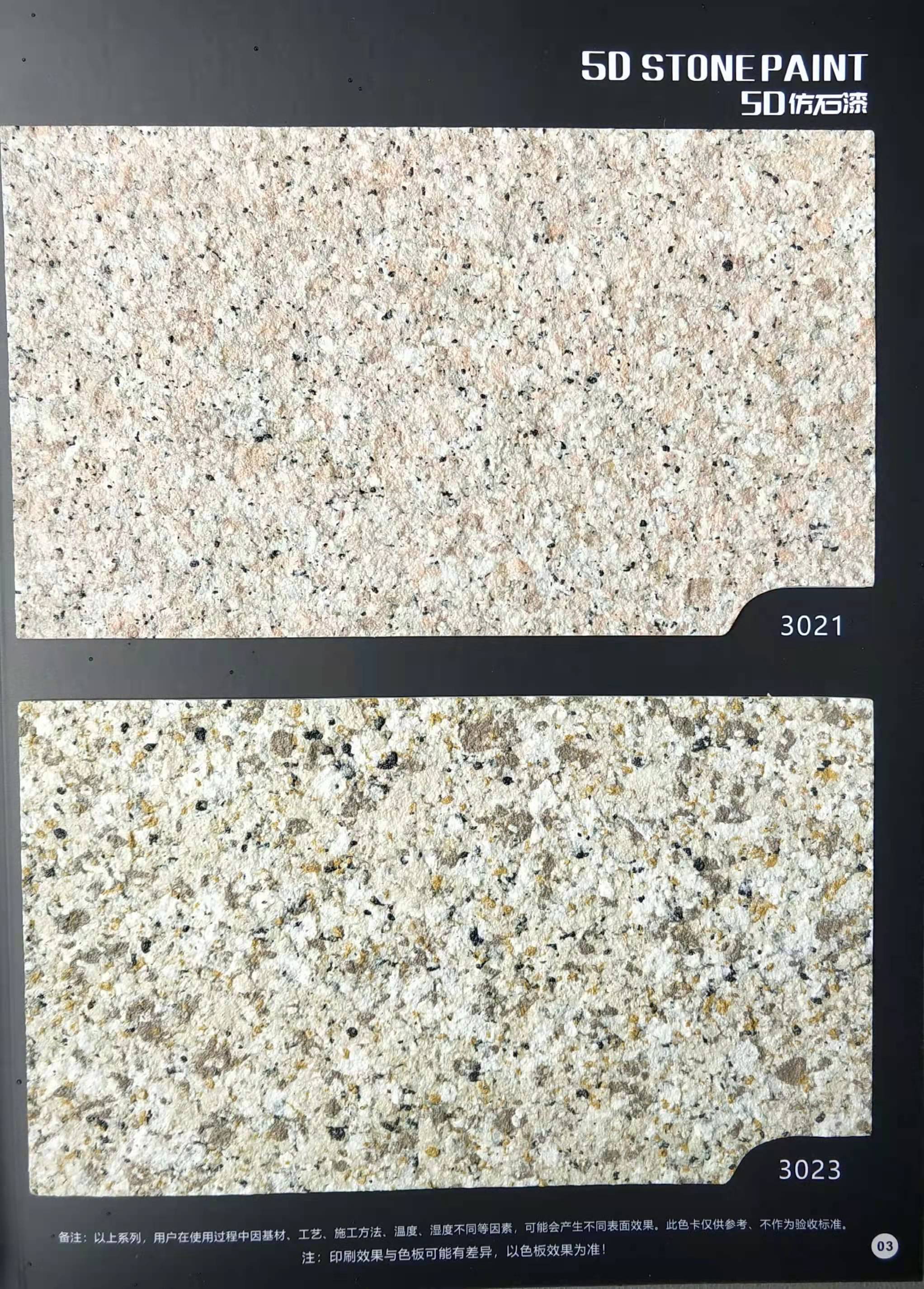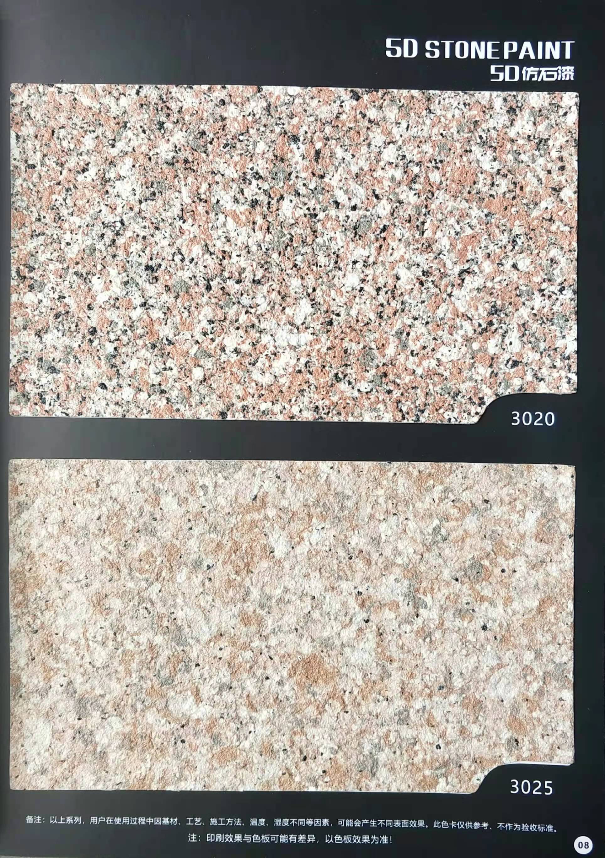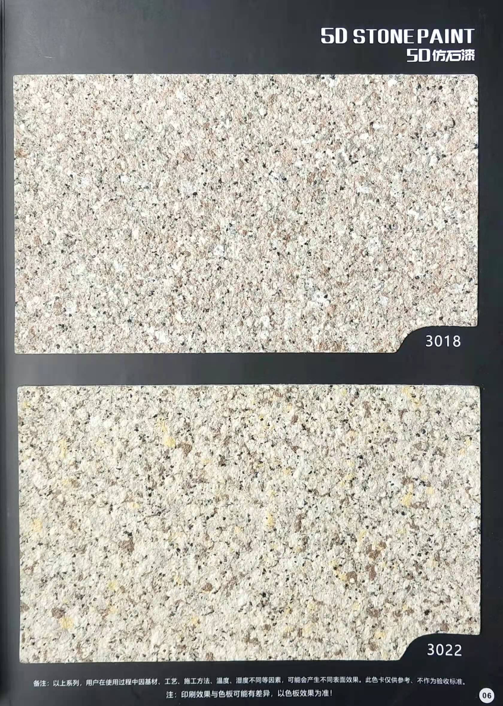 5D仿石漆產品采用純水性配方,符合環保要求無輻射。·具有極高的石材仿真度,仿花崗巖、大理石程度可以達到95%。營造出逼真的花崗巖、大理石效果,讓外墻高雅華貴,質感強烈,個性鮮明。